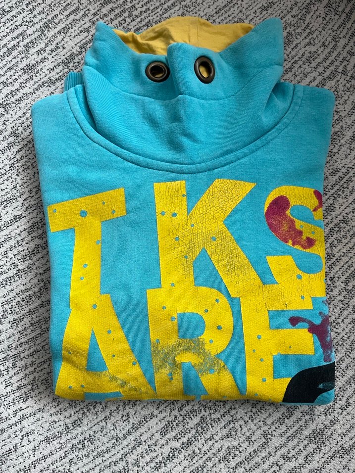 Rahat kesim, bisiklet yaka ve uzun kollu erkek sweatshirt. Örme tekstilden yapılmış, renkli baskılı harflerle sokak stiline uygun.