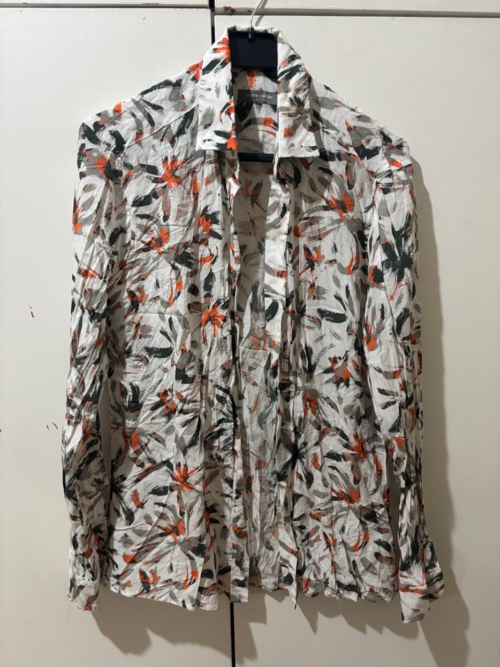 Renkli baskılı, bol kesim, düğmeli, yakalı ve sentetik kumaştan üretilmiş erkek uzun kollu gömlek. Günlük rahat sokak stiline uygundur.