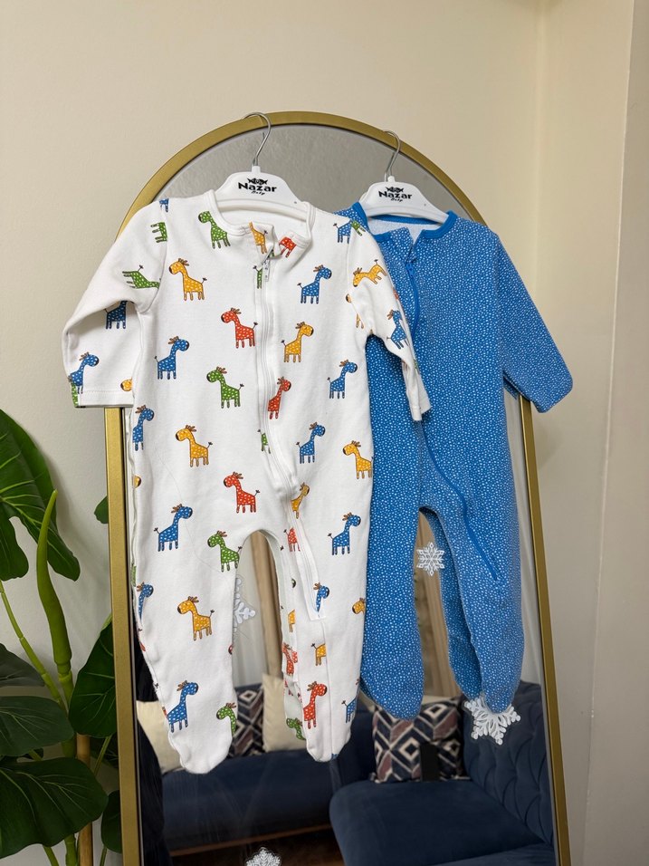 Renkli Baskılı Fermuarlı Bebek Tulum 2 Li