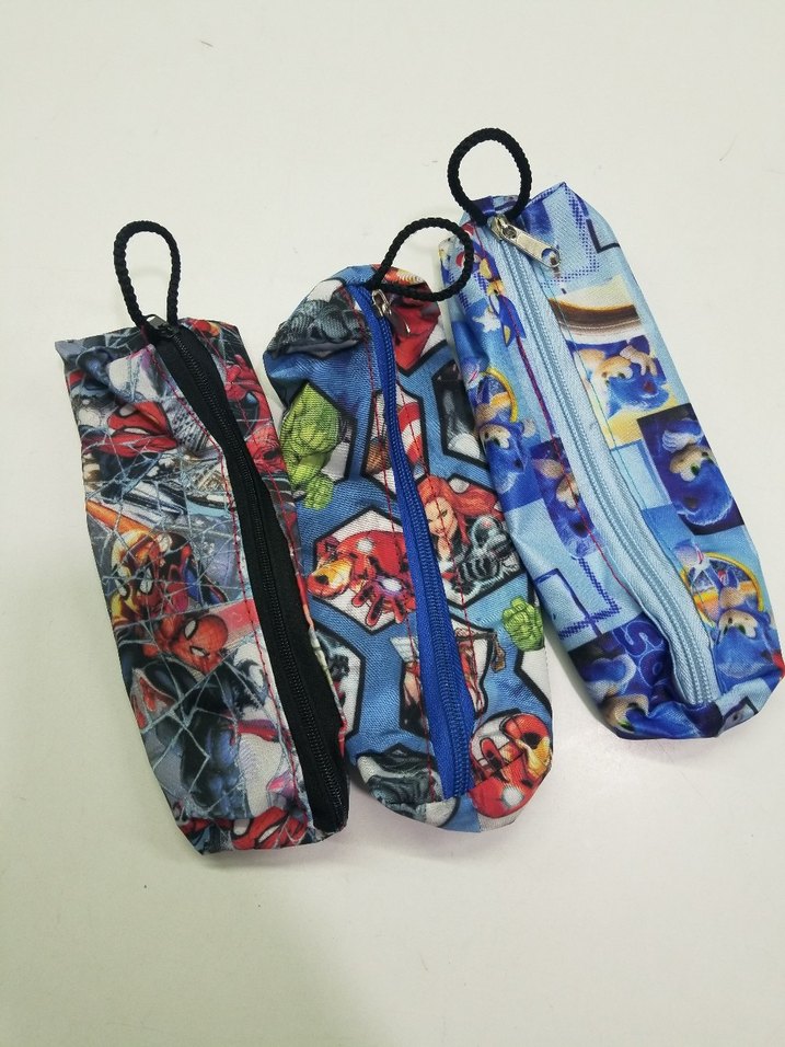 Çocuklar için renkli baskılı, sentetik kumaştan fermuarlı kalemlikler. 1 adet ücreti. Toptan mevcut. Kendi üretimimiz.