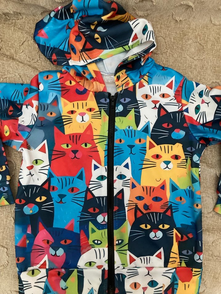 Renkli baskılı ve fermuarlı ince mont.Yeni, hiç kullanılmamıştır. 5-6 yaş için uygundur.