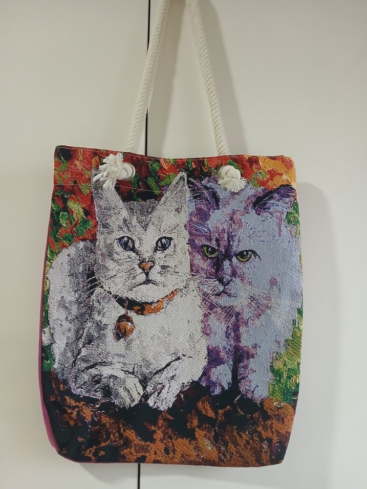 Dükkanımızı kapattık kalan ürünleri satıyoruz. ÜRÜN YENİDİR. Boy: 41 cm En:33 cm Çanta ağız kısmı bir adet mıknatıslı. İçi bez astar. Renkli baskılı iki kedili tekstil çanta. Bohem ve retro tarzlara uygun, günlük kullanıma idealdir.