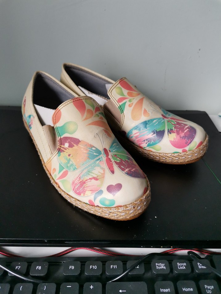 Renkli baskılı kadın espadril. Canlı tie-dye desenleriyle günlük kullanım için uygundur.