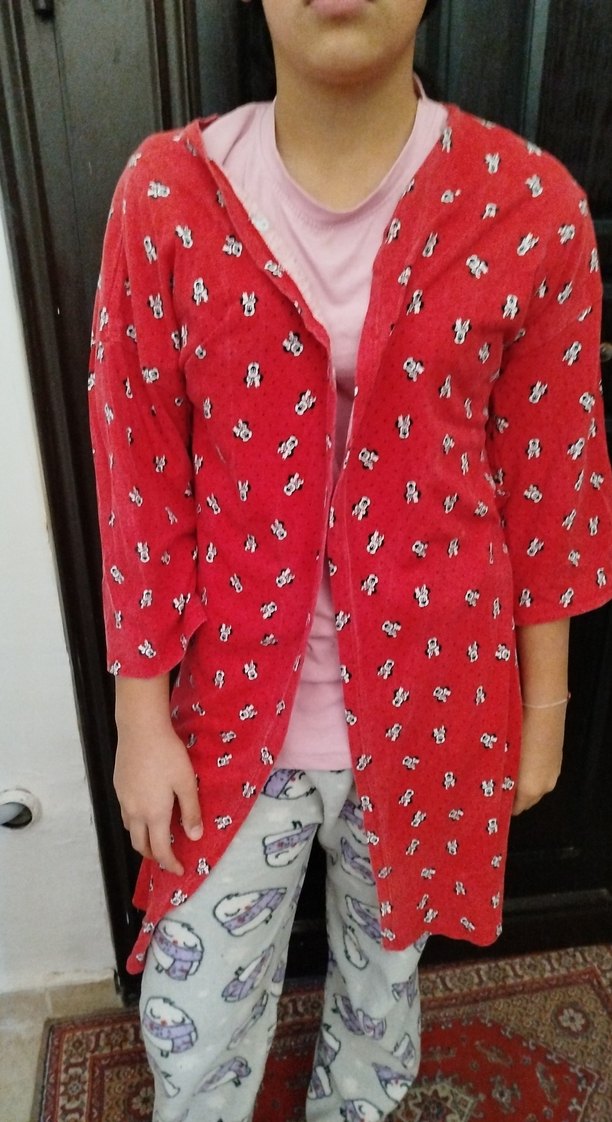 Renkli baskılı, uzun kollu, bol kesim kırmızı midi sabahlık, rahat ve sıcak bir tarz sunar. Midi boyu ile konforlu kullanım sağlar. ️