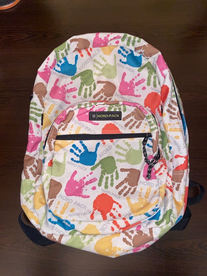 Defoları mevcuttur fotolarda gösterildi. Kadınlar için sentetik kumaştan yapılmış, pastel renkli el baskılı desenli sırt çantası. Fermuarlı bölmeleri vardır, bohem ve retro tarza uygundur.