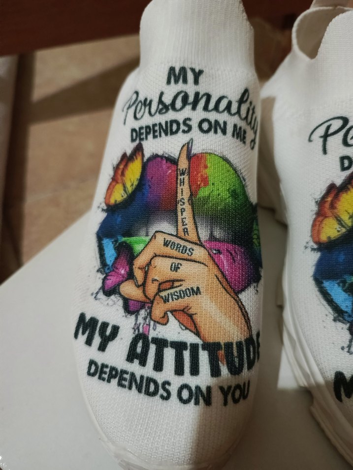 Renkli baskılı, örgü detaylı sentetik kumaştan kadın spor ayakkabısı. Dolgu topuklu ve bohem tarzda, günlük kullanıma uygundur.