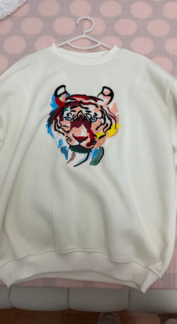 Rahat kesim, yuvarlak yaka ve uzun kollu kadın sweatshirtü. Çok renkli baskılı kaplan deseni ve kürk detayları içerir, sentetik kumaştan üretilmiştir, günlük kullanıma uygundur.