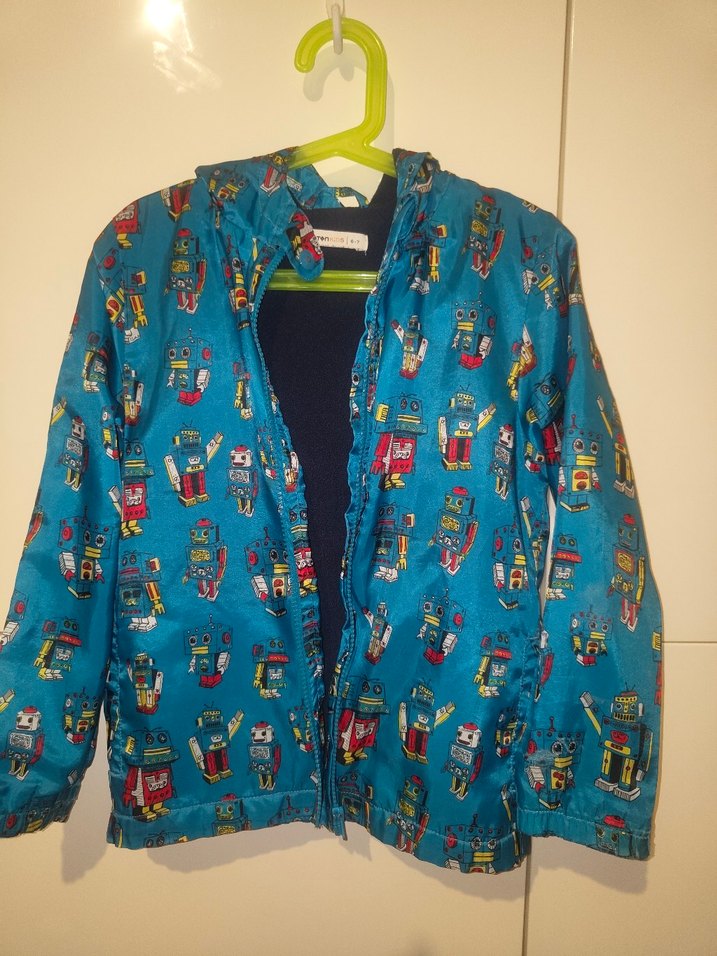 Renkli baskılı desenli, kapüşonlu ve fermuarlı erkek çocuk yağmurluğu. Yumuşak ve sıcak tutan fleece kumaştan üretilmiştir. ️