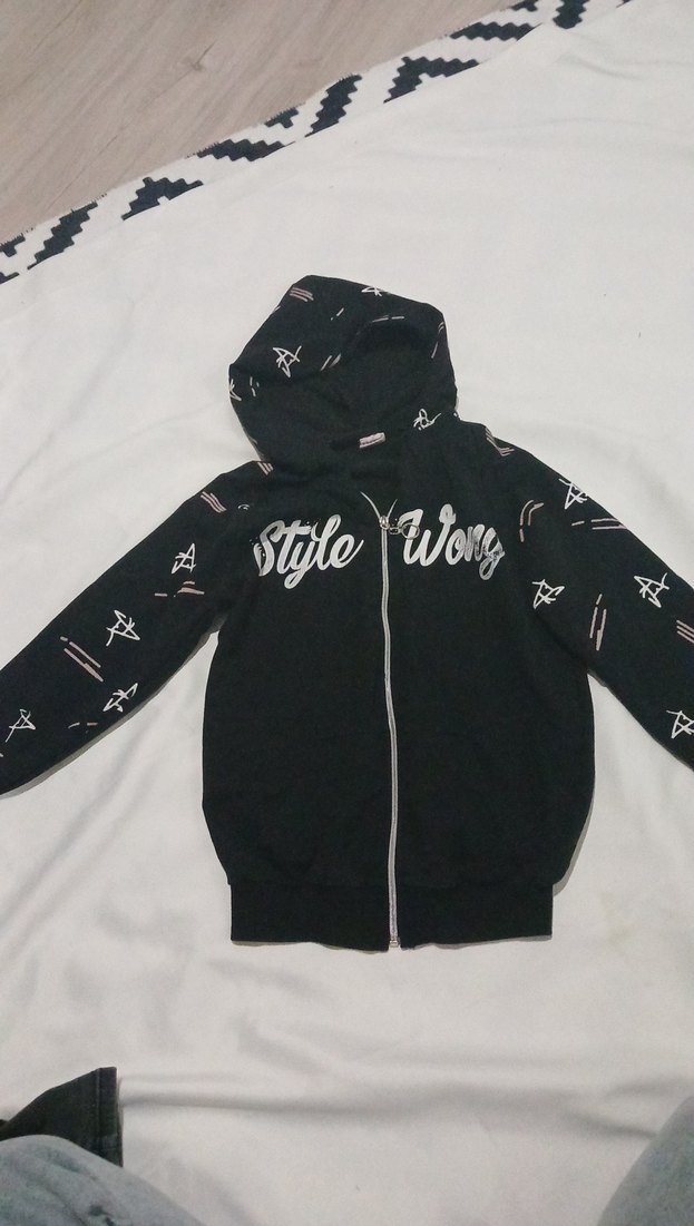 Rahat kesim, kapüşonlu ve fermuarlı siyakiz sweatshirtü, renkli baskılı desenlerle sokak tarzını yansıtıyor.