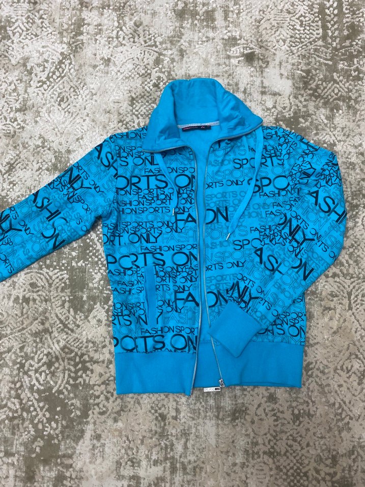 Renkli Baskılı Kapüşonlu Mavi Fermuarlı Ceket
