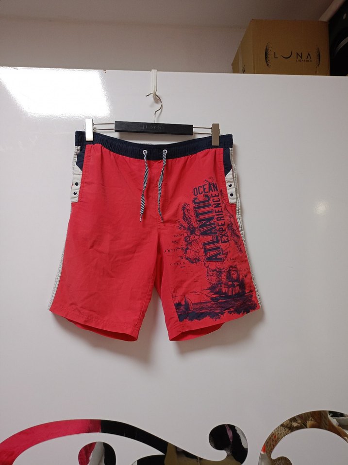 Renkli baskılı, kemerli ve bol kesim erkek şort. Plaj için uygun, sokak stili ve athleisure rahatlığını bir arada sunar. Üzerinde 'LUNA' markası bulunur.