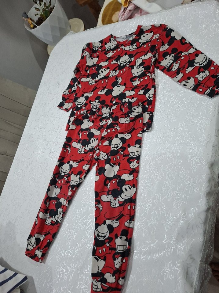 Renkli baskılı, kırmızı erkek pijama takımı, uzun kollu, bisiklet yaka ve düğmeli. Normal midi boyda, rahat ve şık bir görünüm sunar. 5 yas