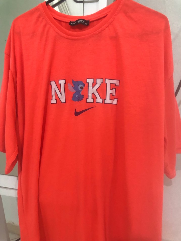 Kısa kollu, yuvarlak yakalı kırmızı kadın tişörtü, bol kesim ve renkli baskıya sahip. Yumuşak, ipeksi dokusu ile spor ve rahat kullanıma uygun. Önünde 'N&KE' baskısı bulunur. ♀️