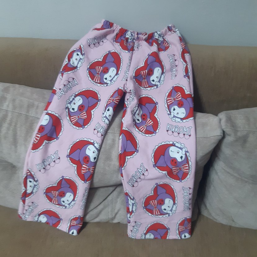 Renkli baskılı karakterler ve pile detaylı, yumuşak ve sıcak kumaştan yapılmış bol kesim pembe pantolon, rahat sokak stili için uygun.
