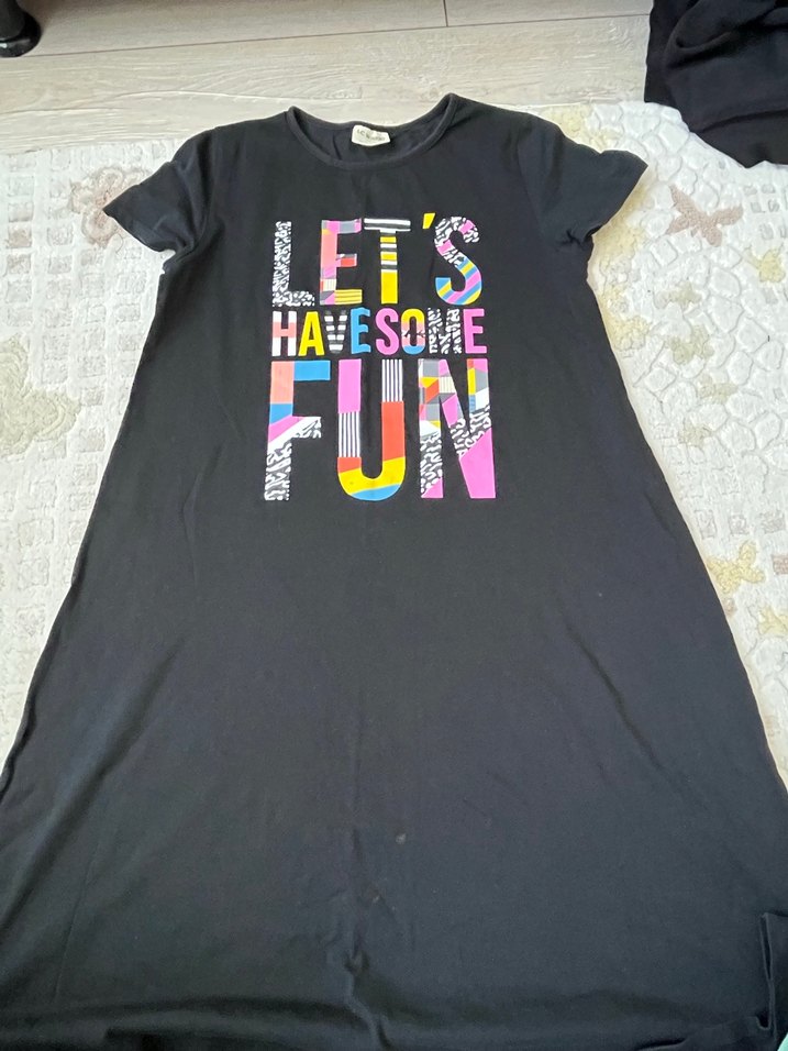 Kızlar için kısa kollu, bol kesim ve yuvarlak yaka tişört. Renkli baskı ve payetli detaylarla pop kültür tarzında. Sentetik kumaş, rahat ve canlı renkler sunar.