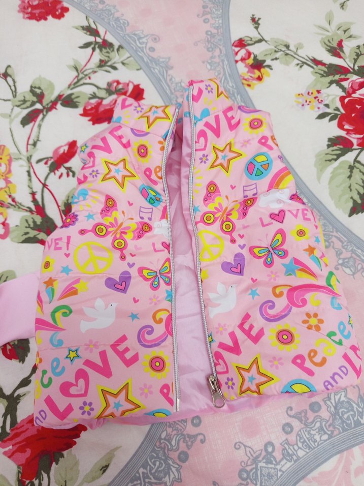 Renkli Baskılı Kız Çocuk Fermuarlı Yelek