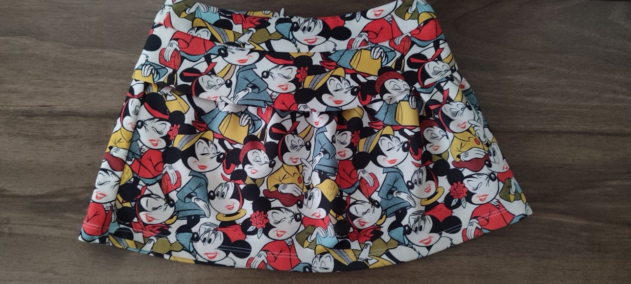 Renkli baskılı pop kültür desenli, pilili ve dar kesim kız çocuk eteği. Sentetik kumaştan yapılmış, bohem ve retro tarzı yansıtır.