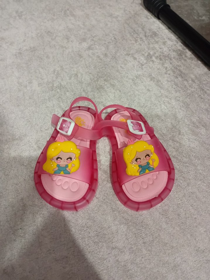 Pembe, renkli baskılı ve tokalı kayışlı kız çocuk sandaletleri, kauçuk malzemeden üretilmiştir. Rahat ve eğlenceli tasarım.