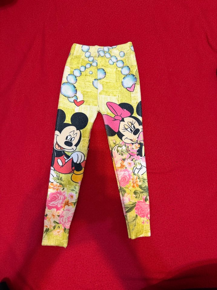 1-3yaş. Elastik yapılı, Mickey ve Minnie Mouse baskılı, renkli ve pop kültür tarzında kız çocuk taytı.