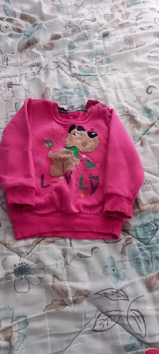 Pembe uzun kollu kız sweatshirtü, yuvarlak yaka ve bol kesimlidir. Yumuşak ve sıcak kumaştan, örgü detaylı ve renkli baskılıdır. ikili fiyat