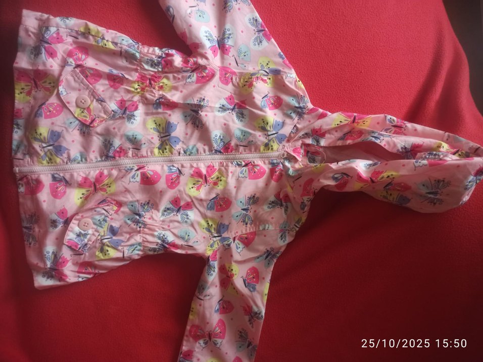 Renkli baskılı, fermuarlı ve v yaka kesimli kız çocukları için bol kesim yağmurluk. Yumuşak sentetik kumaştan, bohem tarzda.