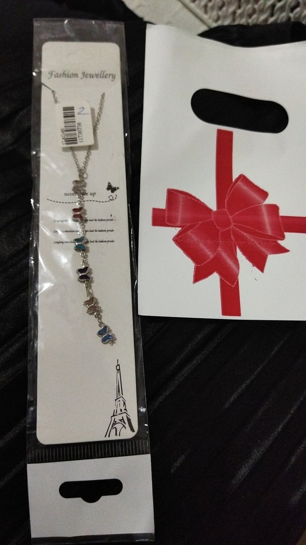 Uzun uzunlukta, renkli baskılı ve kurdele detaylı kadın kolyesi. Bohem tarzıyla parti ve gündelik şıklık için uygundur. Fashion Jewellery markalıdır.
