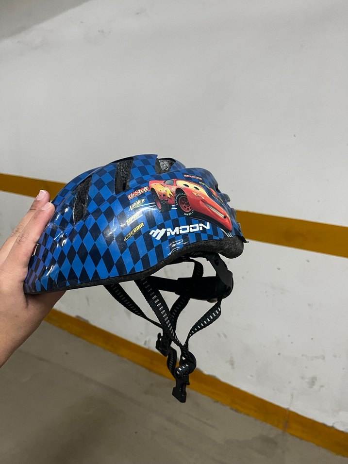 Renkli baskılı mavi biker kask, dayanıklı plastikten üretilmiş ve Velcro kayışla güvenli kullanım sağlar. Sokak stili ve rock punk havasına uygundur. ️