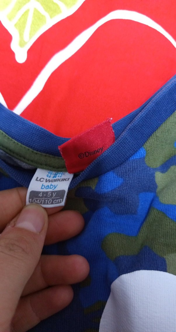 Renkli baskılı mavi çocuk atleti, 4-5 yaş ve 104-110 cm bedenindedir. LC Waikiki baby koleksiyonundan Disney lisanslıdır.