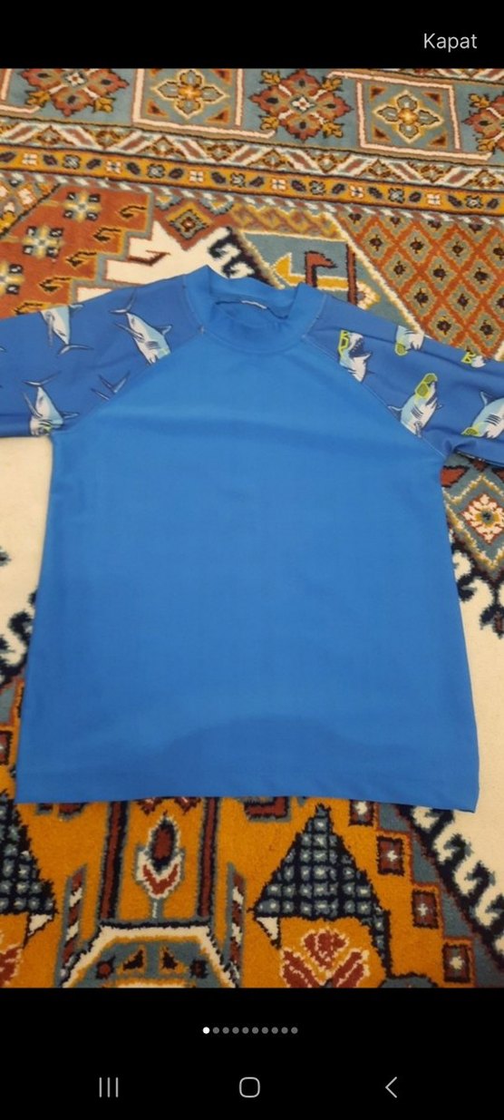 Renkli Baskılı Mavi Kısa Kollu Erkek Mayo