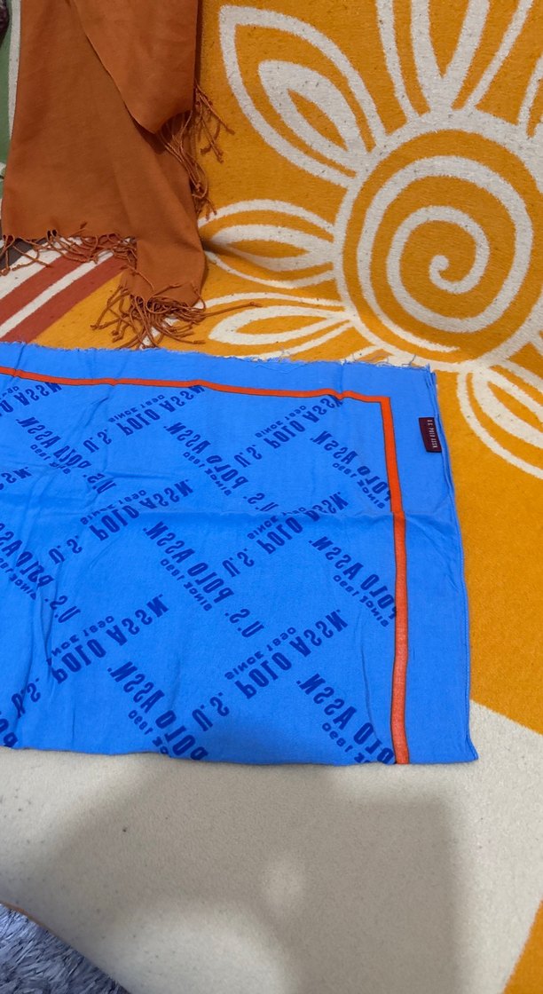 Renkli Baskılı Mavi şal