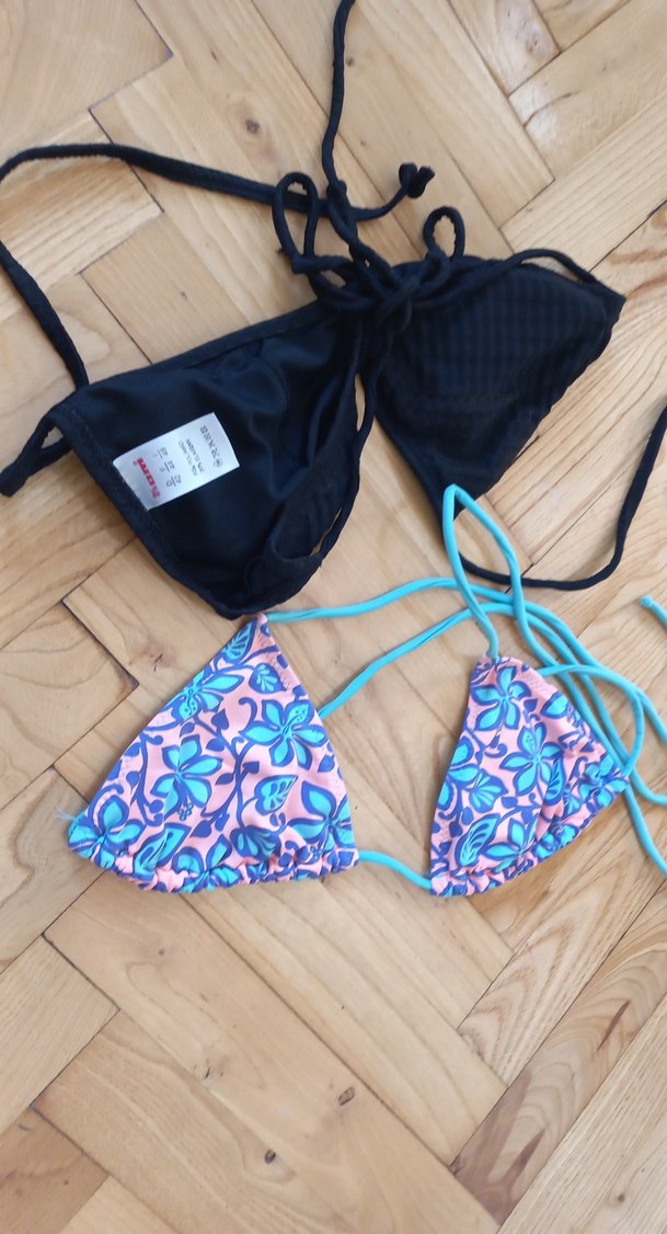 Renkli baskılı, elastik detaylı ve ince askılı, kısa kesim bohem tarzda bikini üstü. Plaj için uygun ve rahat bir seçim.