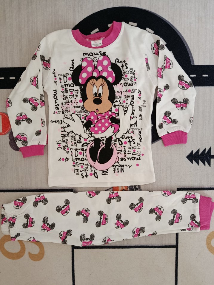 Renkli Baskılı Minnie Mouse Çocuk Pijama Takımı