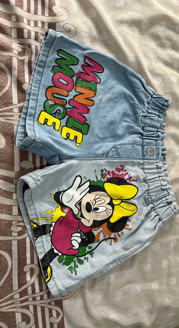 Renkli Baskılı Minnie Mouse Denim Şort