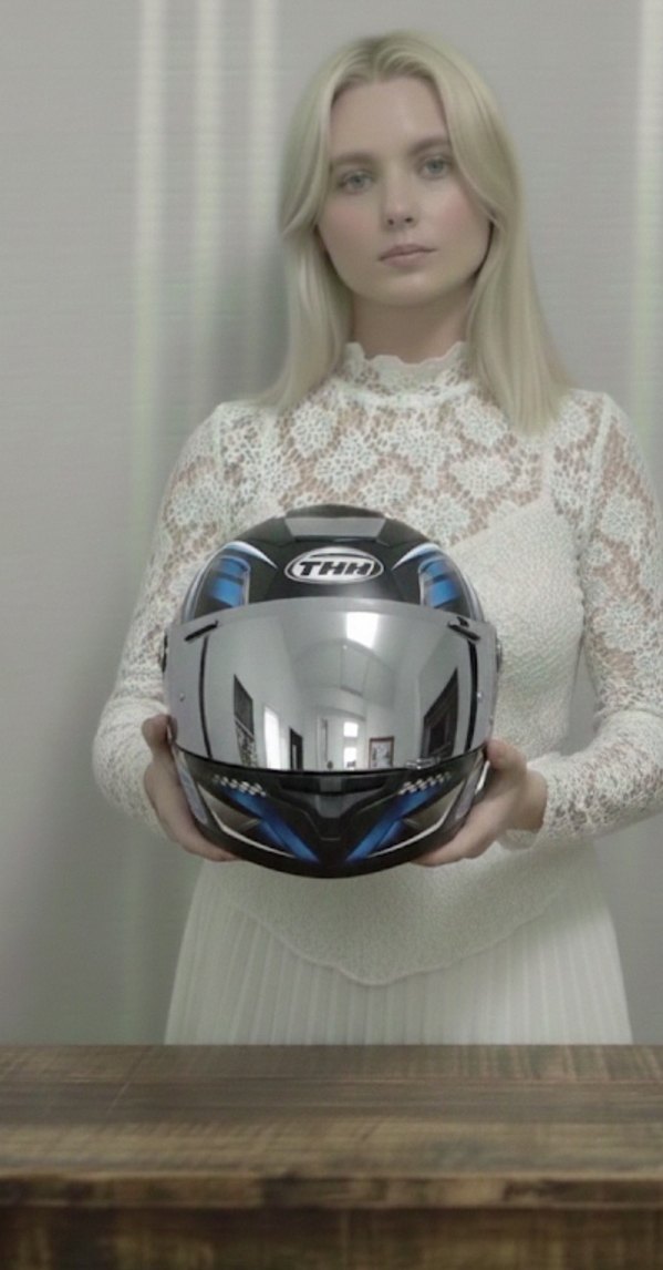 Renkli Baskılı Motosiklet Kaskı, Tokalı, Mavi