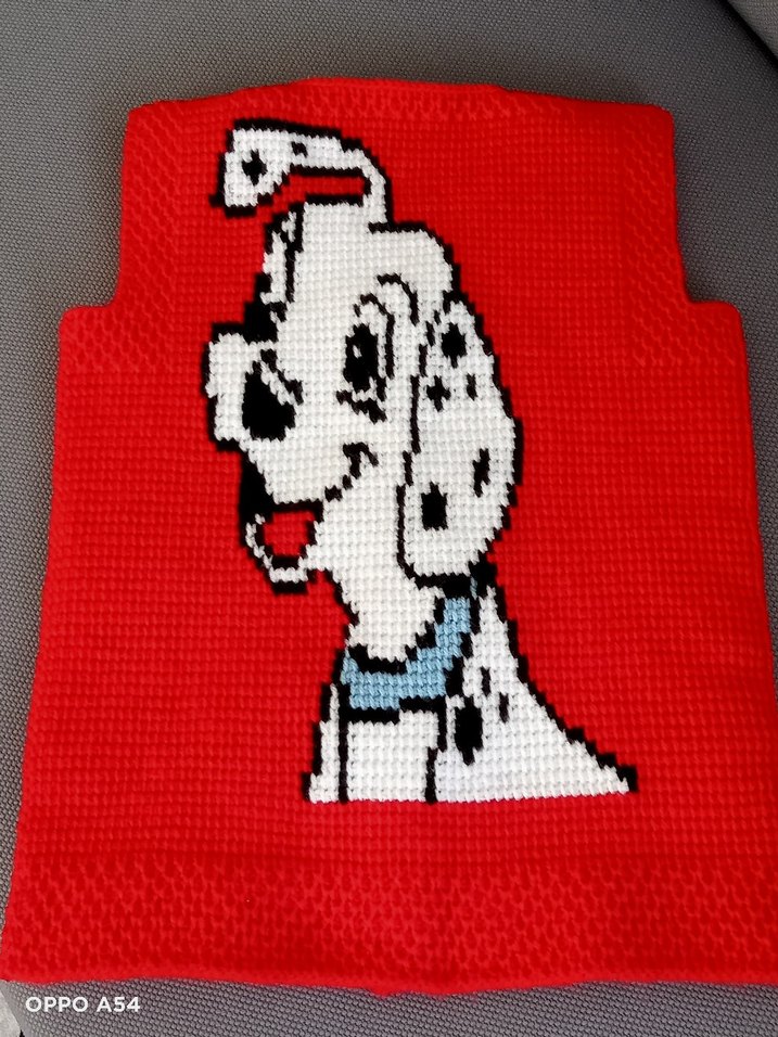 Renkli Baskılı Örgü Köpek Desenli Yelek