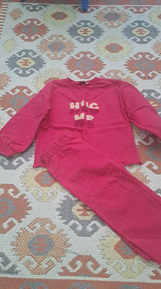 Pembe renkli bebek kız takımı uzun kollu, örgü dokulu ve renkli baskılı detaylara sahiptir. Rahat ve konforludur. e bebek hello baby 3 yas temiz urun sorunsuzdur