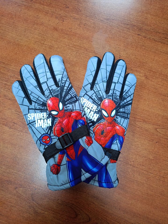 Yumuşak polar kumaştan yapılmış, baskılı Örümcek Adam desenli renkli erkek biker tarzı eldivenler. Ayarlanabilir cırt cırtlı bantları vardır. ️