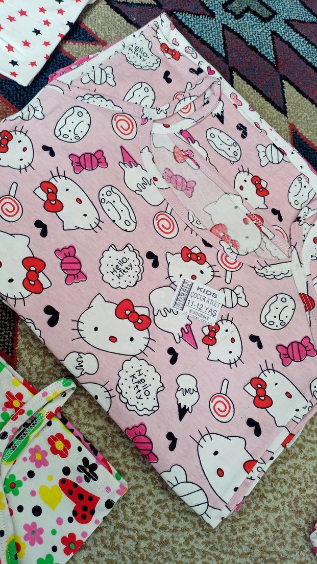 Renkli, pembe pamuklu çocuk çarşafı, Hello Kitty baskılıdır ve 11-12 yaş çocuklara uygundur. ️