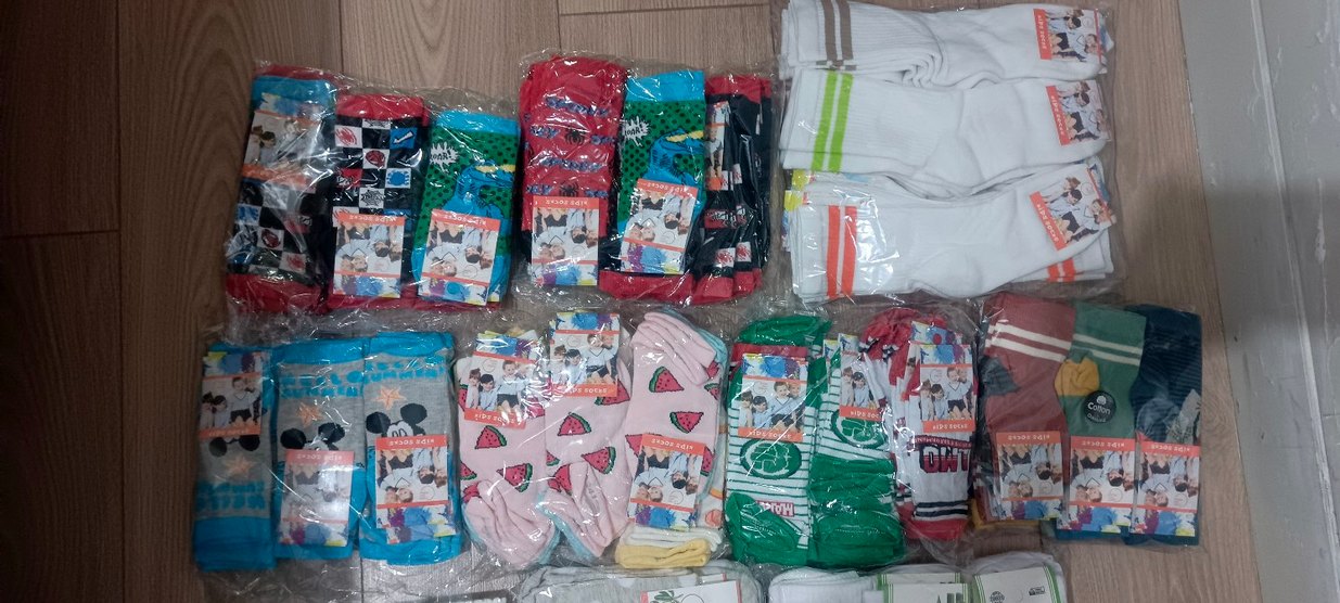 Sentetik kumaştan yapılmış, çeşitli baskılı desenlere sahip renkli patik çorapları. Karpuz ve çizgili canlı tasarımlar içerir.