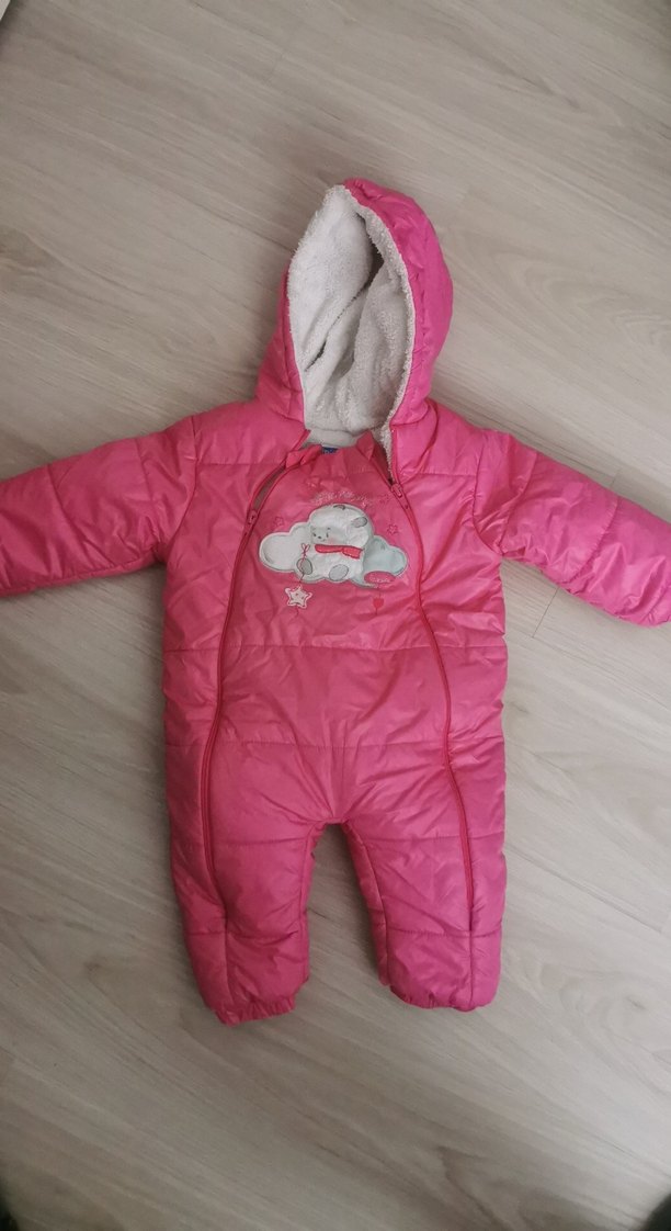 Renkli baskılı, fermuarlı ve kapüşonlu pembe bebek kız tulumu, yumuşak ve sıcak astarlıdır. ❄️