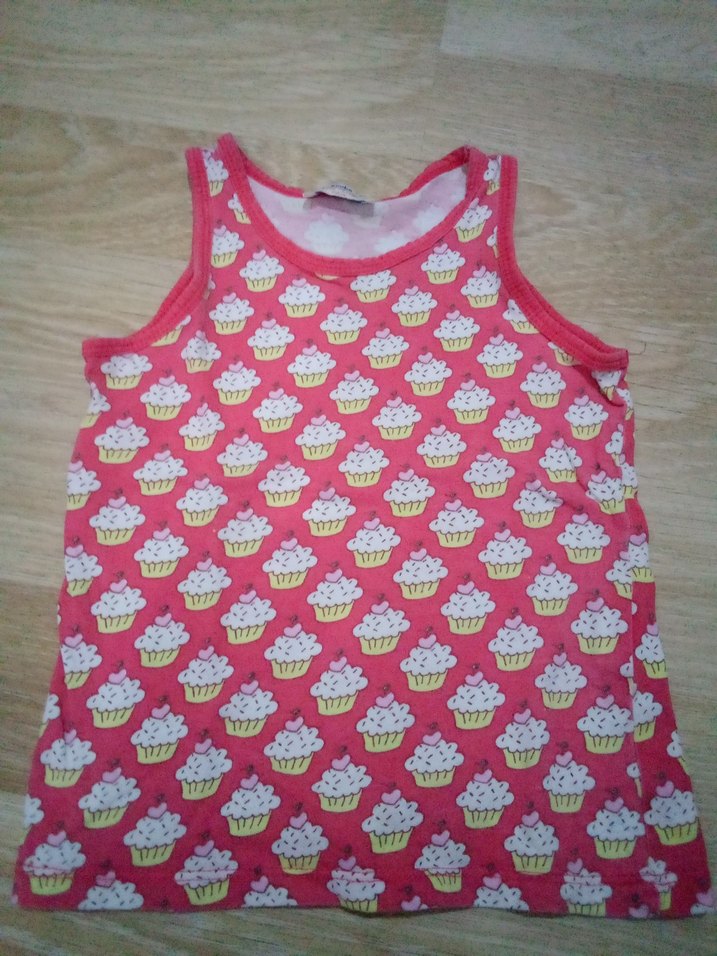 Renkli cupcakelerle süslenmiş pembe çocuk atlet. Hafif ve rahat kumaştan üretilmiştir .