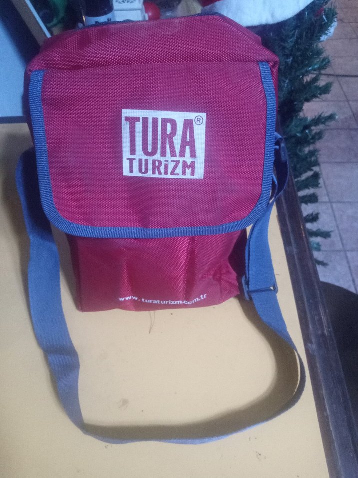 Renkli baskılı pembe erkek omuz çantası, fermuarlı kapanışa sahiptir. TURA TURİZM markalı, ayarlanabilir askılı ve sokak stilini yansıtan bir modeldir.