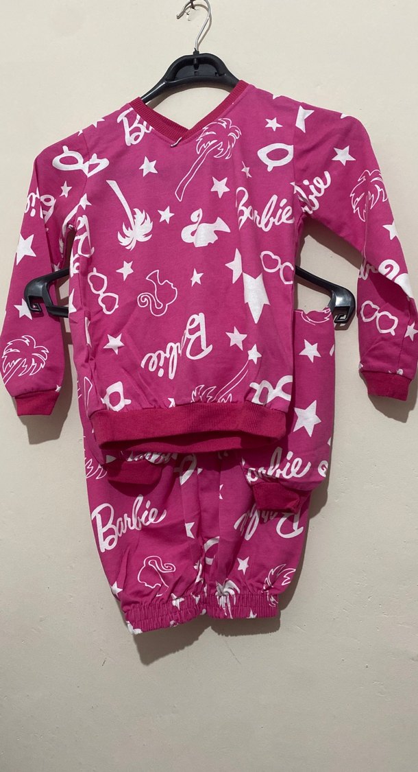 Renkli baskılı, uzun kollu ve yuvarlak yaka pembe kız eşofman takımı. Örme dokusu ve bol kesimiyle rahat ve şık bir sokak stili sunar. 9-10 yaş da mevcuttur.