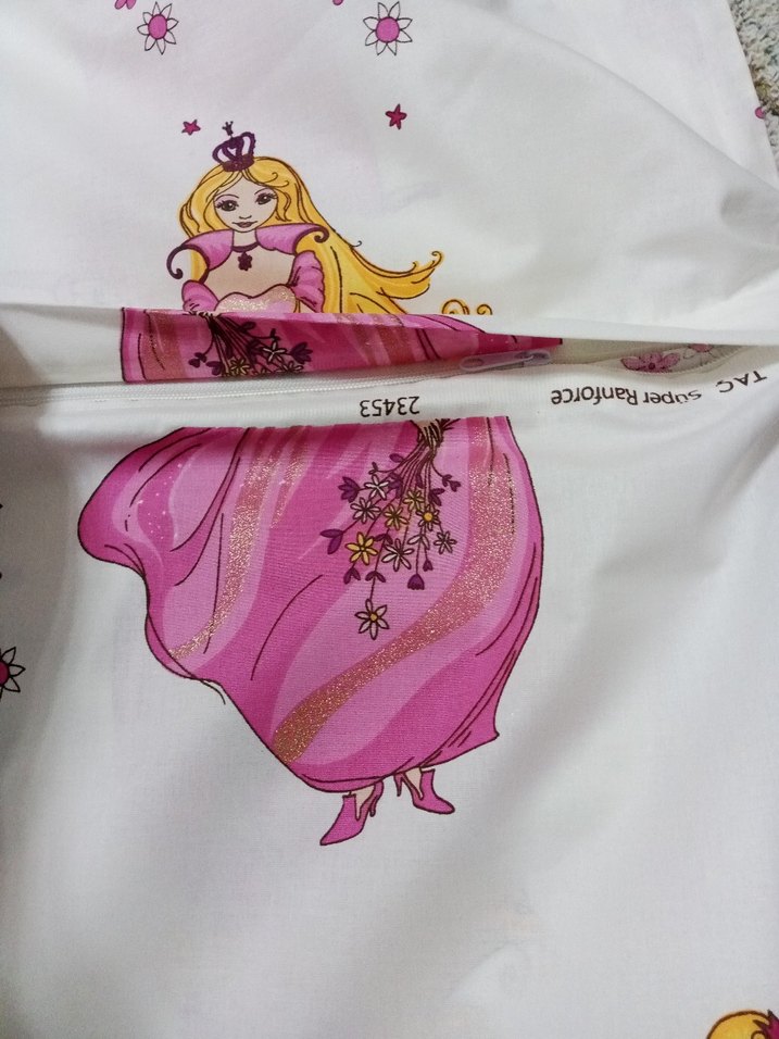 Yumuşak sentetik kumaştan yapılmış, renkli baskılı pembe kız çocuk nevresimi hiç kulanilmadi sadece yastik yıkandi ürün temiz özel yapim başi fermuarli