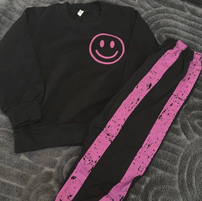 Renkli Baskılı Pembe Sokak Tarzı Kız Eşofmanı