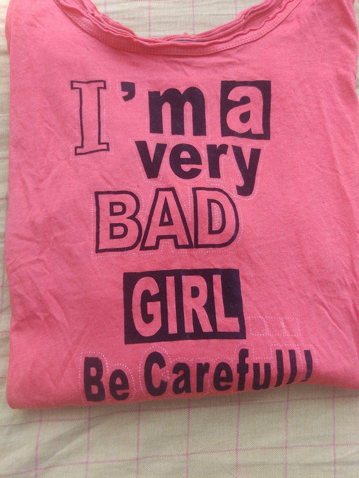 Renkli Baskılı Pembe Tişört
