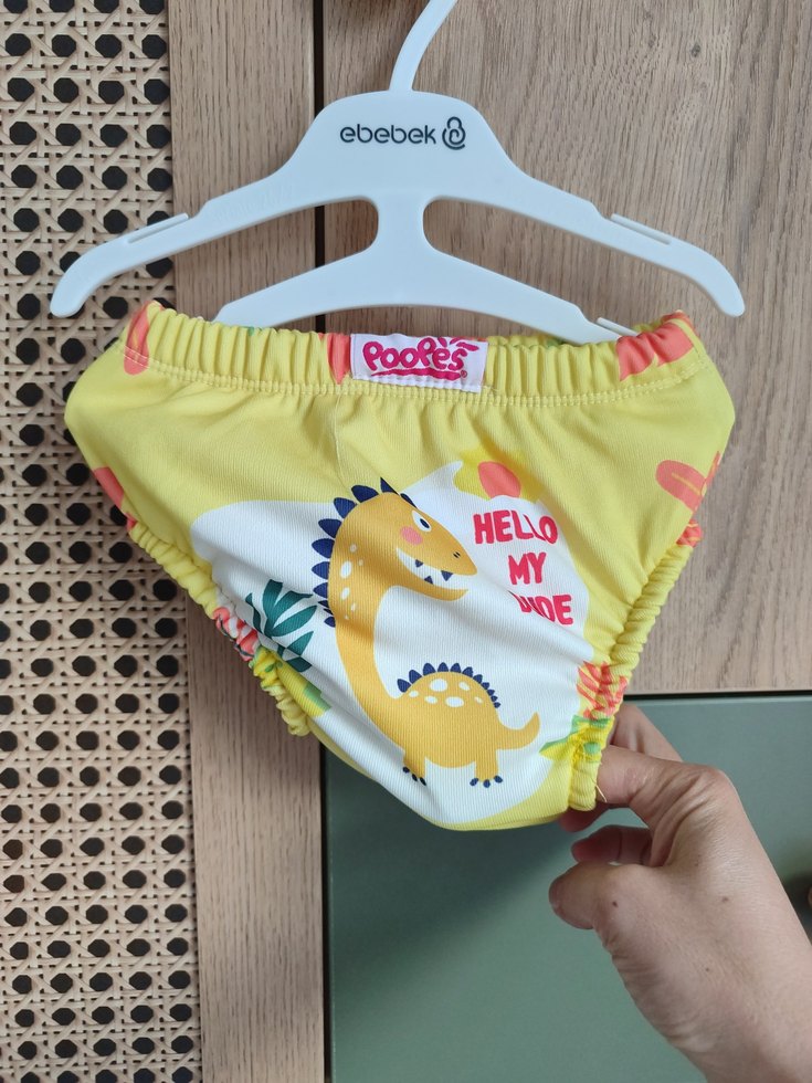 Renkli baskılı dinozor desenli sarı çocuk külot, yumuşak ve rahattır. 2 3 defa kullanıldı