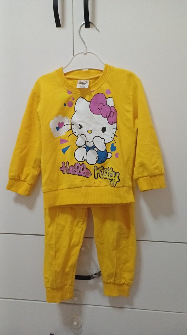 Sarı renkli, uzun kollu ve bisiklet yaka olan bu peluş takımı, rahat kesimi ve renkli Hello Kitty baskısıyla kız çocukları için uygun. Örgü detaylarıyla streetwear tarzına sahip. 2 yaş çok kilolu bebekler icin olmayabilir sadece alt parçada ara ağda hafif sökülmesi var oda dikilir yani sadece bir kere giydirdim kızım 20 aylık 12.5 kilo bilginize.