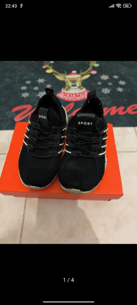 Siyah renkte, renkli baskılı detaylara sahip, bağcıklı erkek spor ayakkabısı. Kauçuk malzemeden üretilmiştir ve "SPOR" yazısı bulunur.