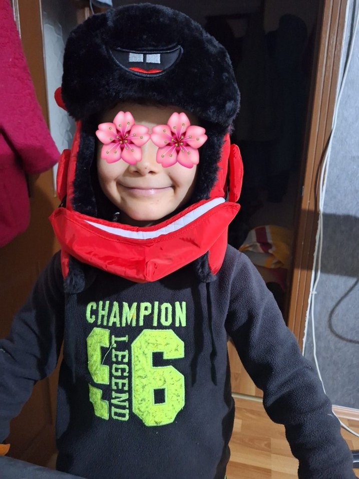 Renkli baskılı desenlere sahip siyah biker tarzı erkek çocuk beresi, yumuşak ve sıcak bir kumaştan üretilmiştir. Ayarlanabilir cırt cırtlı bant içerir ve "CHAMPION" ile "LEGEND" yazılarını taşır.